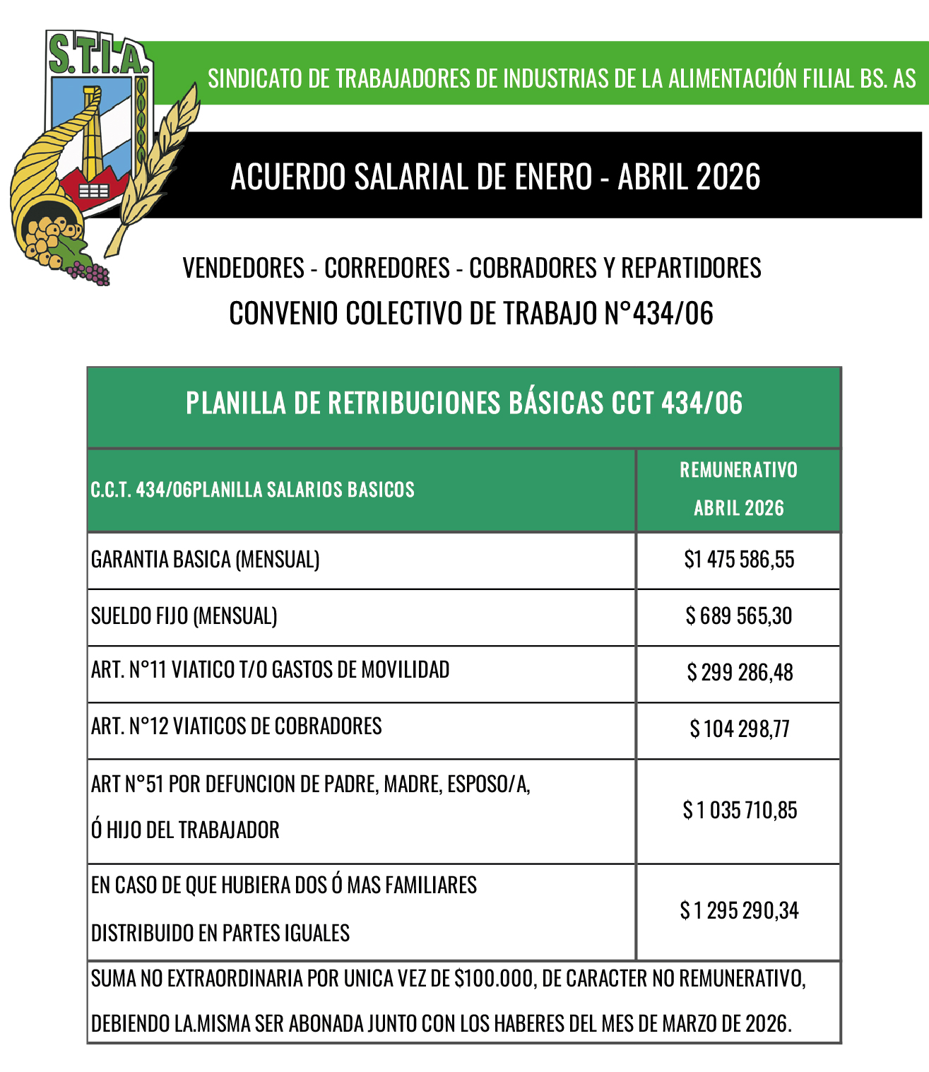 CONVENIO COLECTIVO DE TRABAJO N° 434/06 ANEXO1CORREDORES Y/O VENDEDORES EXCLUSIVOS DE LA INDUSTRIA DE LA ALIMENTACION